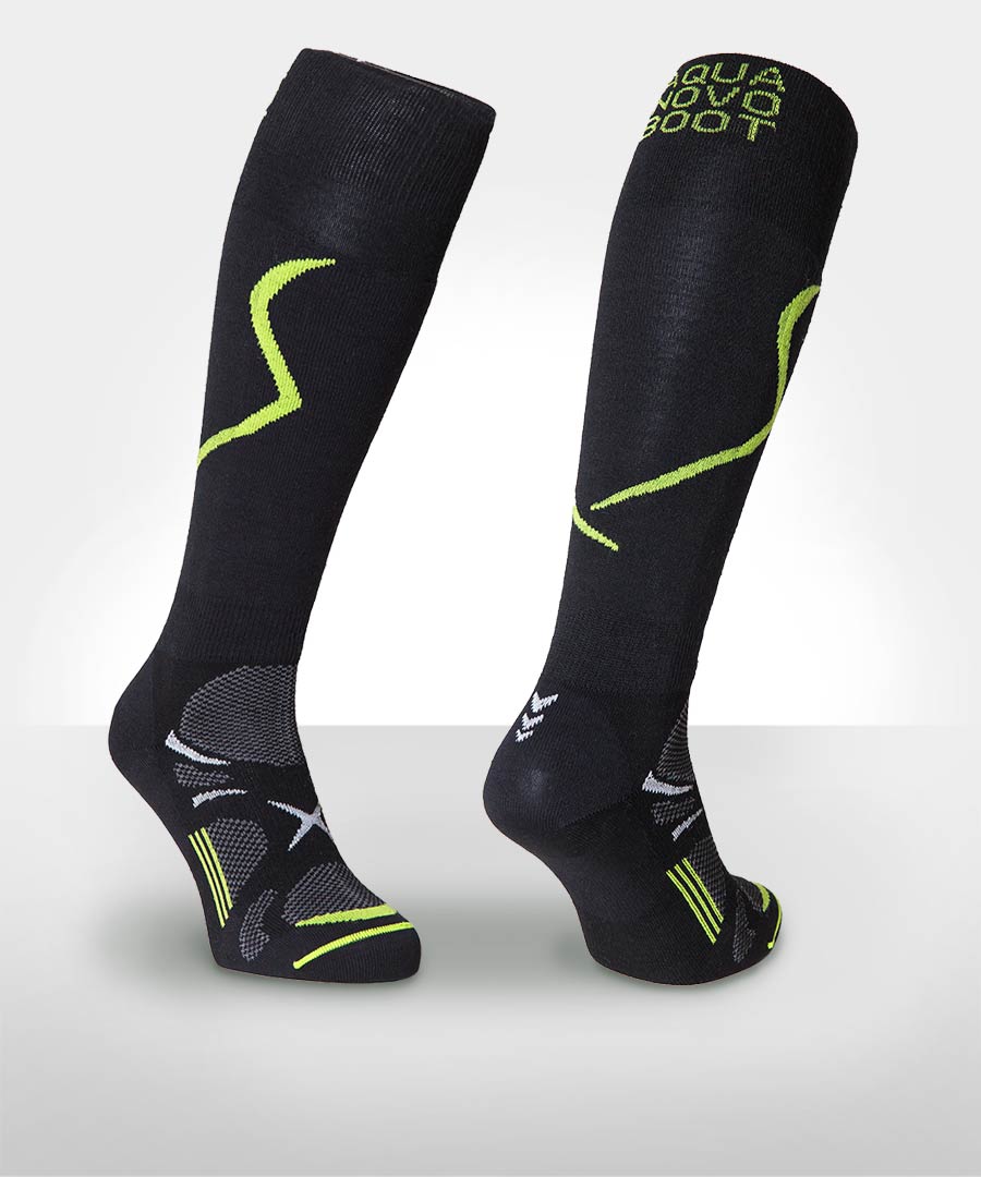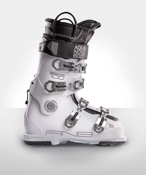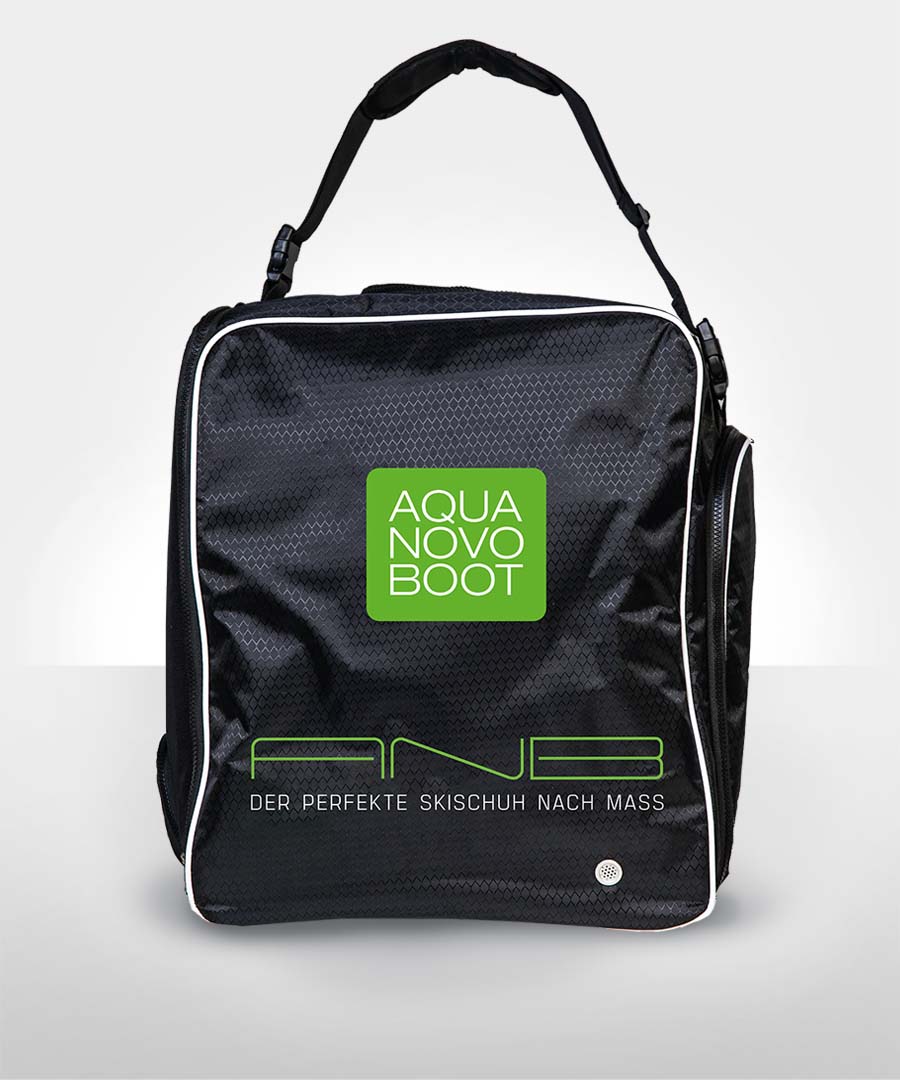 Die drei Komponenten des AquaNovoBoot – individuell angeformte Skischuhschale, geschäumter Innenschuh und anatomische 3D-Einlegesohle – werden erstmals gleichzeitig angefertigt. Dabei ist die Anfertigung des Maßskischuhs spektakulär: Sie findet im Wasser statt, in unserer patentierten „Bootbox“. Dies ist eine Plexiglasbox, die mit Wasser gefüllt ist und über Druckluft arbeitet.